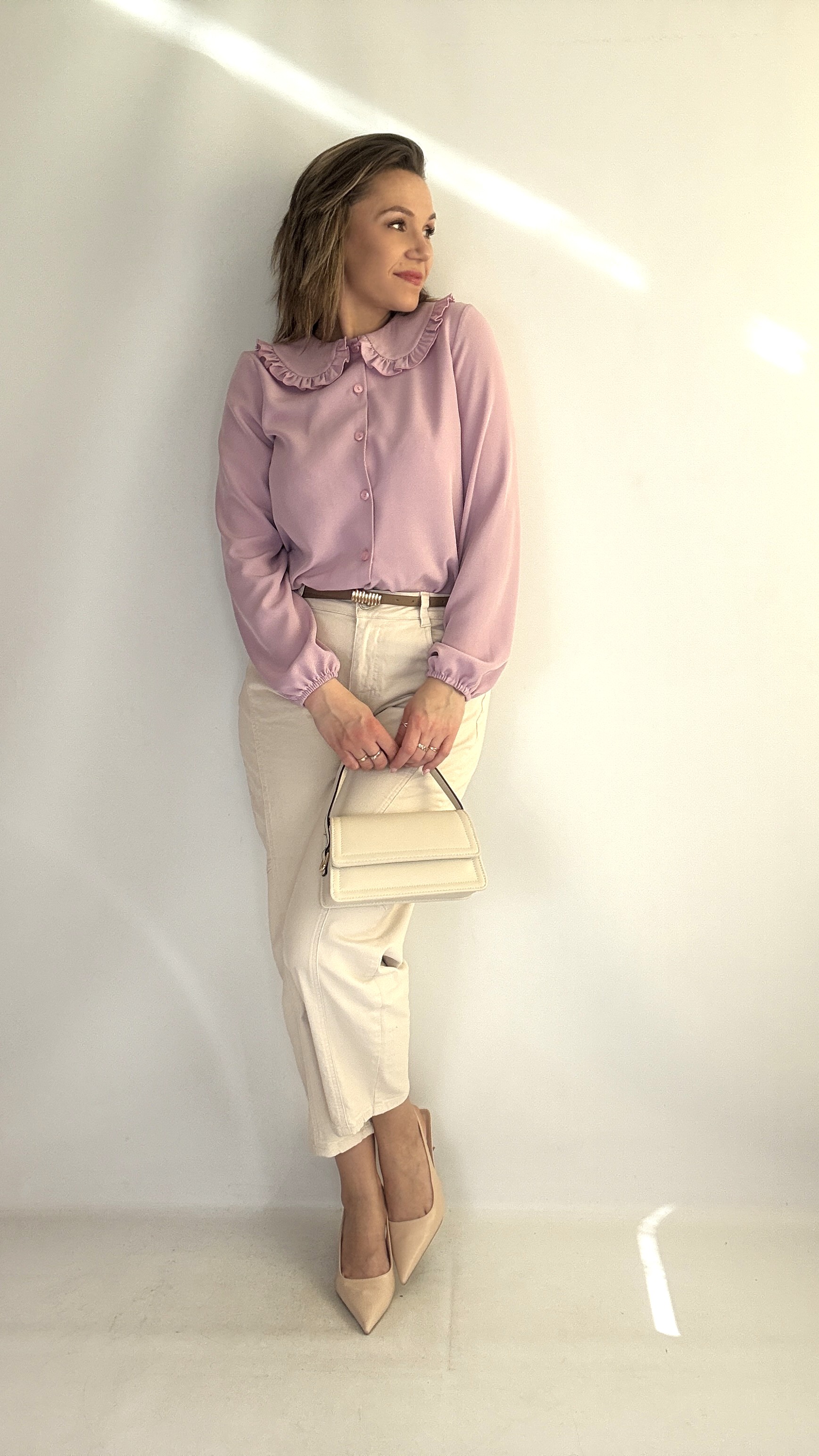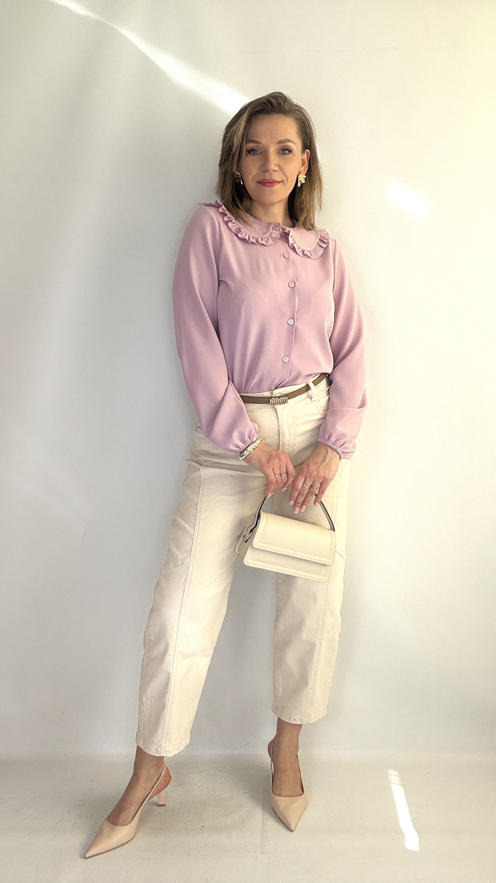Koszula Damska z ozdobnym kołnierzykiem na guziki puder róż