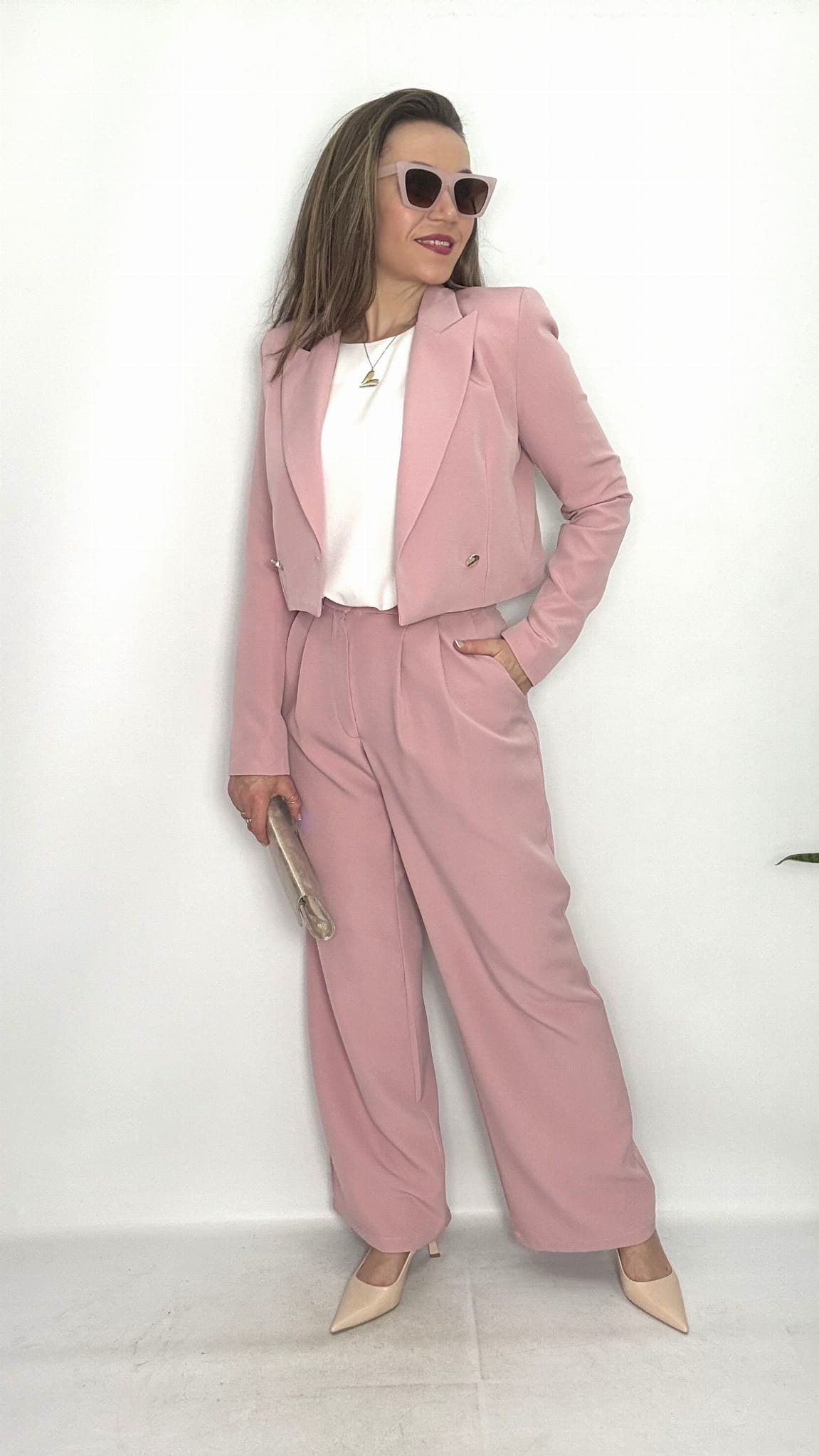 Elegancka damska marynarka o krótszym kroju w kolorze pudrowego różu z guzikami to doskonały wybór do codziennych jak i eleganckich stylizacji. Propozycja dla kobiet lubiących proste ponadczasowe kroje. Doskonale wyprofilowana, podkreśli każda figurę co sprawi że poczujesz się niezwykle elegancko i kobieco. Możesz połączyć ją z naszą spódnicą w tym samym kolorze lub spodniami tworząc modny spójny look.